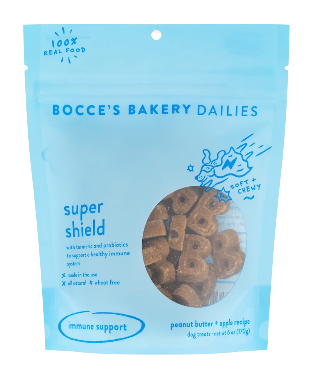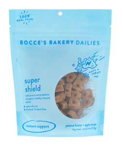 We are not the only ones in need of some daily TLC. Let's keep your pup feeling not a day over one, and extra fresh for those sloppy 'welcome home' smooches. Super Shield Dailies are packed with anti-inflammatory turmeric and healthy immune-boosting probiotics in a peanut butter & sweet honey flavor to support a healthy immune system.