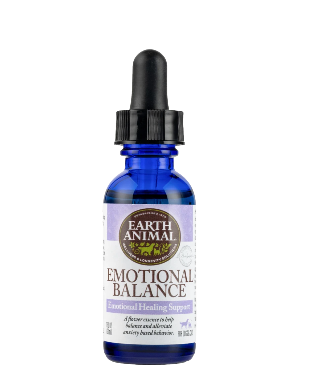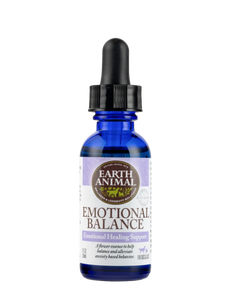 Emotional Balance is a healing blend of flower essences that helps reduce fear and calm anxious behavior. It helps to balance the emotions and minimize neurotic behavior such as separation anxiety, fear of loud noises, thunderstorms, visits to the groomer, relocation, obedience issues, aggressive behavior, or bereavement. For chronic anxiety, we recommend using Emotional Balance for one month.