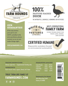 Our treats are purposefully crafted to allow for the perfect size treat for rewarding your pup! They are scored to break easily into bite-sized pieces, and are packaged in resealable bags. Coming from 100% pasture-raised duck, these dehydrated treats are hormone-free and certified humane. No antibiotics. No chemicals. No pesticides.
