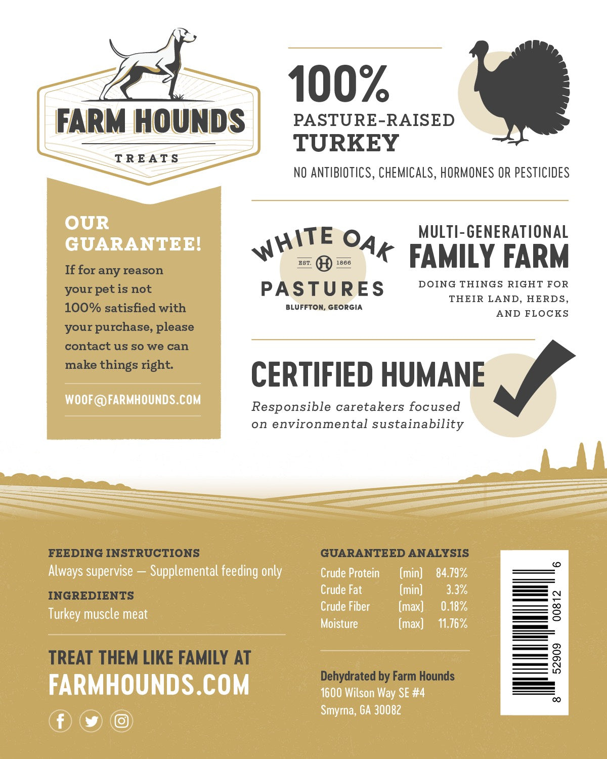 Only the GOOD stuff: Every bag is 100% Turkey that is transparently sourced from family farms! With the power of dehydration, we offer your pups treats that are free of salt, sugar, fillers, chemicals, and preservatives!