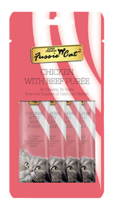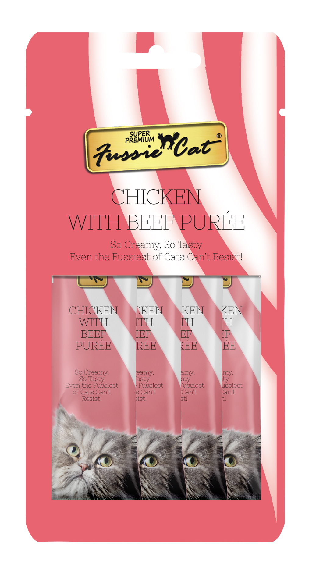 Creamy in texture and rich in taste, this indulgent, flavorsome puree will make even the Fussiest of Cats demand for more! Fussie Cat Chicken with Beef Purée is an easy-to-feed cat treat with essential vitamin E for your cat’s diet to support healthy skin and coat.