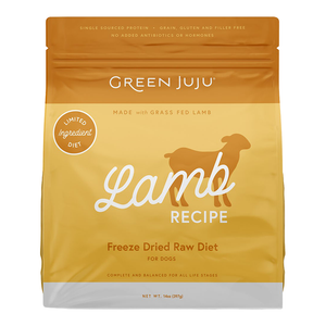 Ingredients: Lamb heart, lamb liver, lamb necks (with bone), organic collard greens, organic kelp, vitamin E supplement.