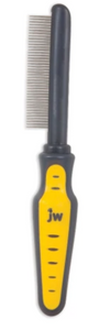 Change your grooming routine with the JW® GripSoft® Cat Comb. Designed to prevent matting and hair ball formation, the JW GripSoft Cat Comb's non-slip, curved rubber handle makes grooming your cat more comfortable and easier. For the best results, use the GripSoft Cat Brush to remove tangles, then follow up with a Cat Comb.