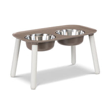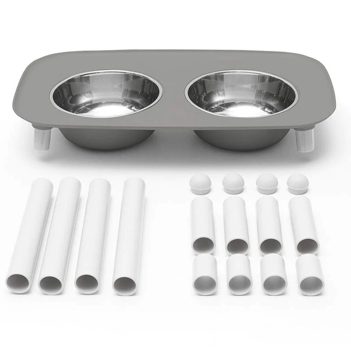 Messy Mutts Elevated Double Feeder with Stainless Bowls - Adjustable Height 3" to 10", 5 Cups Per Bowl - Grey