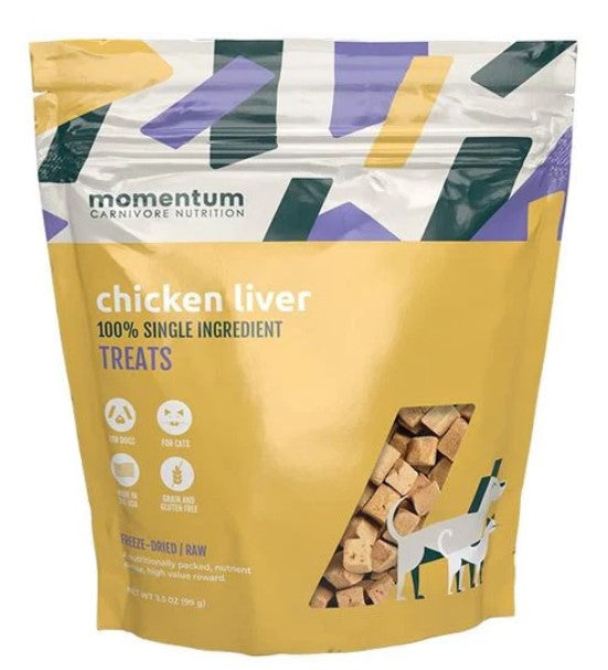 Momentum Carnivore Nutrition Freeze-Dried Raw treats are your pet's new favorite HEALTHY bite sized snack! Made with the highest quality ingredients and freeze-dried slowly to retain freshness, these treats are packed with flavor your pet is craving!