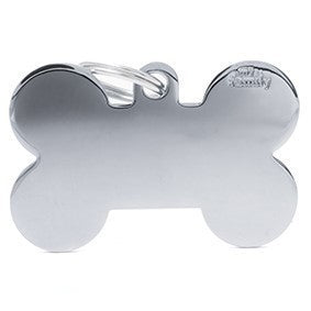 My Family USA Pet Tag - Basic Chrome - Bone Chromed Brass - XL