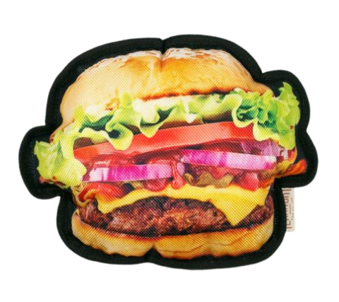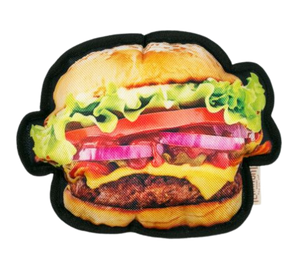 Mark Your TerritoryTM this carnival season with Original Territory's Hamburger With Squeaker! This dog toy is made with durable materials such as reinforced fabric for long-lasting interactive play. In addition, we've also added a squeaker for exciting search-and-find fun. Great for fetch, tug-of-war, and other supervised play fun, your pup and this toy will go deliciously together like a burger and fries!