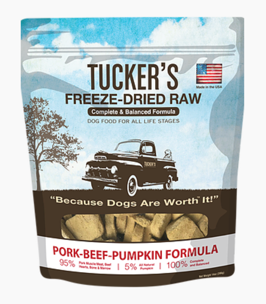 Tucker's Complete & Balanced Pork-Beef-Pumpkin Formula is formulated to meet the nutritional levels established by the AAFCO Dog Food Nutrient Profiles for All Life Stages, including growth of large size dogs (70lbs or more as an adult).