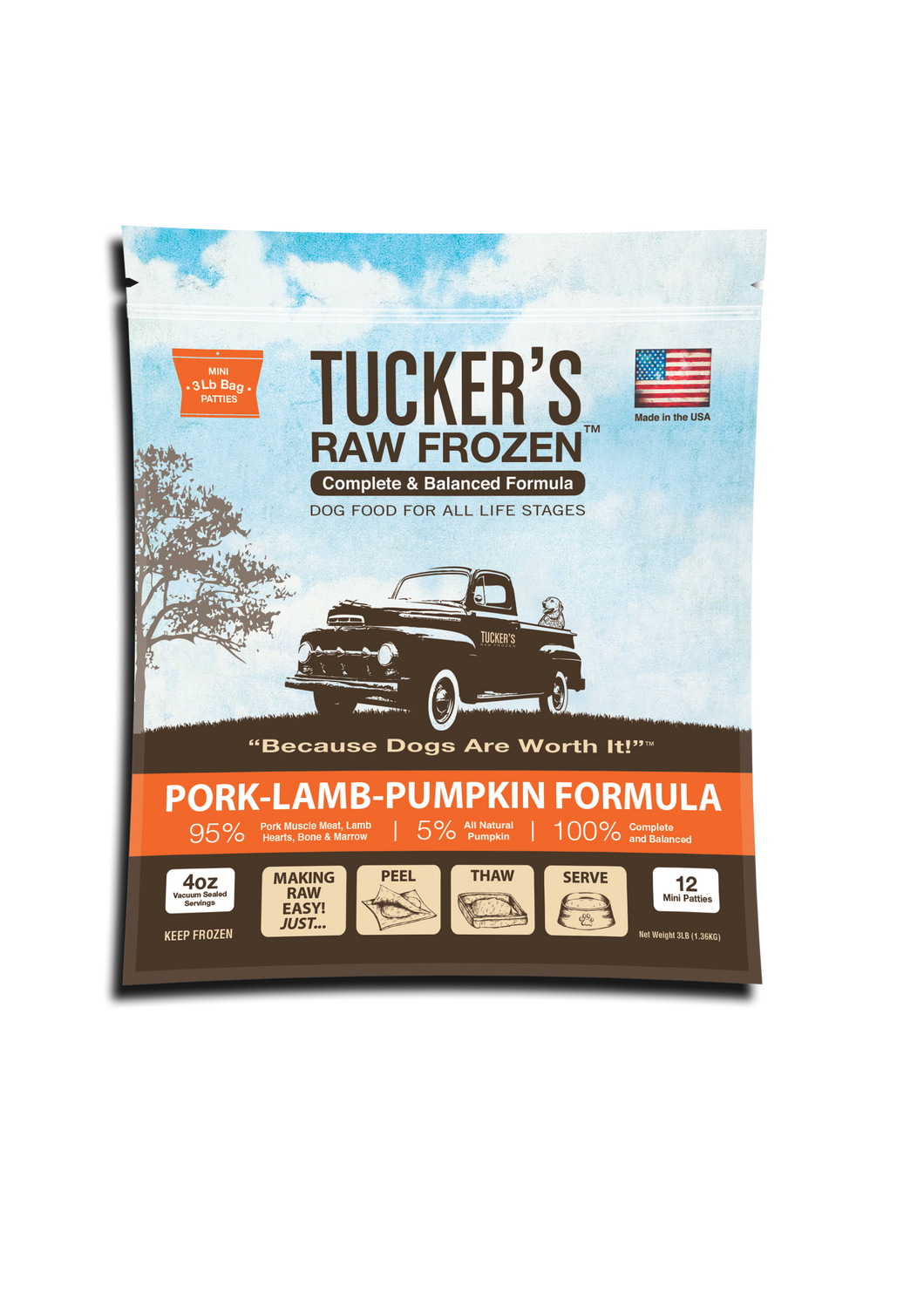 Tucker's Raw Frozen Dog Food - Pork, Lamb & Pumpkin 3lb Bag